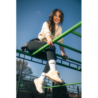Amit a legjobban szeretek benne, hogy nem kell gondolkodnom. Akár egy kültéri edzőparkba megyek átmozgatni magam, akár futok egy könnyedet, hogy kitisztuljon a fejem, vagy csak meetingek között rohanok — mindig tökéletes választás. Kényelmes, könnyű, stabil — mégis elég letisztult ahhoz, hogy egy összeszedettebb szettel is működjön.